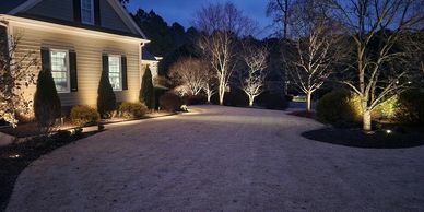 View our landscape lighting installations designed to enhance nighttime ambiance, safety, and architectural features. Our low-voltage systems highlight pathways, patios, and focal points while creating a warm, inviting outdoor atmosphere.